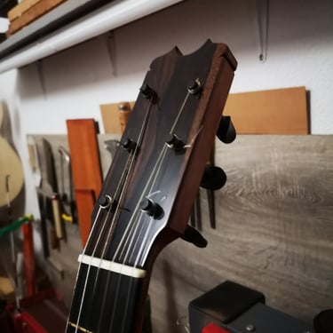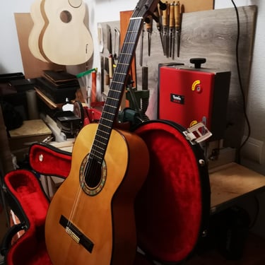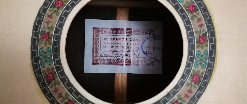 Tapa: Pino Abeto Alpes Fondo/Aros: Ciprés Real Español Mástil: Cedro Rojo Honduras Diapasón: Ébano Africano Puente/Pala: Palo Santo Rio Clavijero: Palillos/wittner Tiro: 657mm Barniz: Nitro/oro viejo