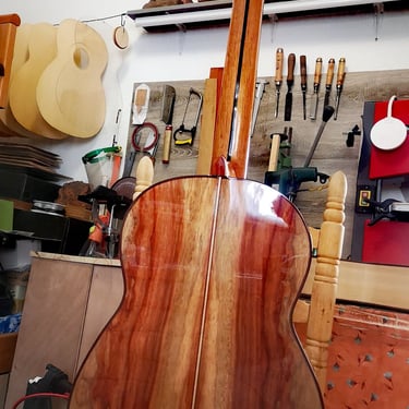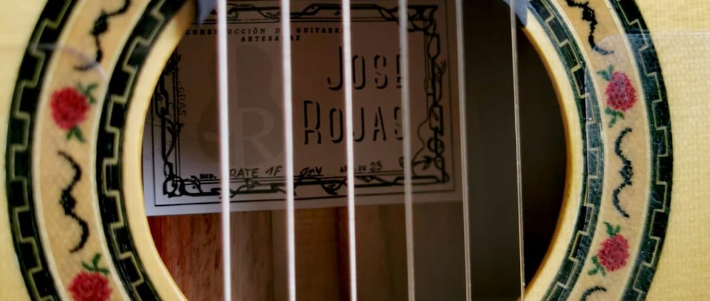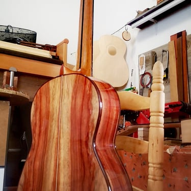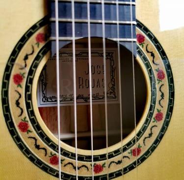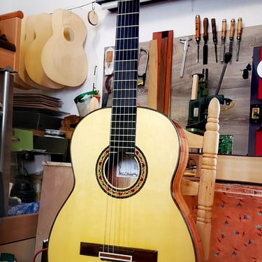 Tapa: Pino abeto Alpes Fondo/Aros: Palo Rojo Bariolé Mástil: Cedro Rojo Honduras Diapasón: Ébano Africano Puente: Palo Santo Rio Pala: Palo Rojo Bariolé Cejuela/Selleta: Hueso Natural/Carbono Tiro: 657mm Barniz: Nitro Natural