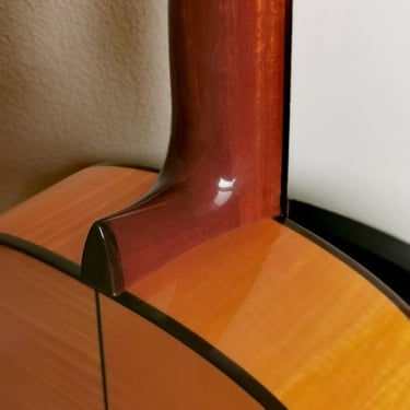Tapa: Pino Abeto Alemán Fondo/Aros: Arce Rizado Flameado Mástil: Cedro Brasil Diapasón: Palo Santo Indias Puente/Pala: Palo Santo Indias Cejuela/Selleta: Hueso Natural Tiro: 660mm Barniz: Poliuretano Ultrafino