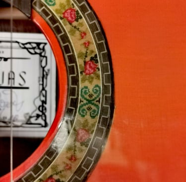 Tapa: Pino Abeto Alemán Fondo/Aros: Palo Santo Indias Mástil: Cedro Rojo Honduras Diapasón: Ébano Africano Puente/Pala: Palo Santo Indias Cejuela/Selleta: Hueso Natural Tiro: 652mm Barniz: Poliuretano Ultrafino