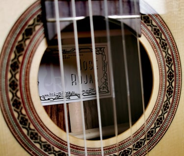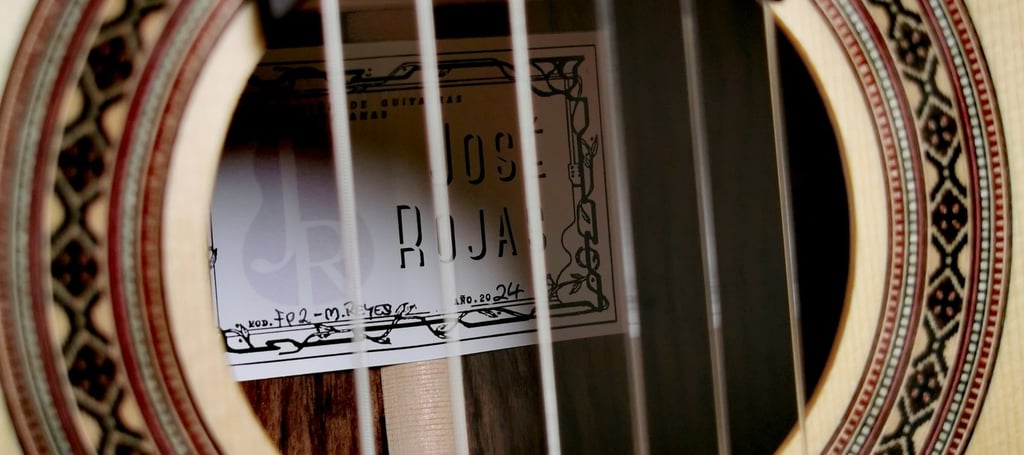 Tapa: Pino Abeto Alemán Fondo/Aros: Palo Santo India Diapasón: Palo Santo Indias Mástil: Cedro de Honduras con Refuerzo(Alma) Puente/pala: Palo Santo Indias Tiro: 650mm Barniz: Poliuretano